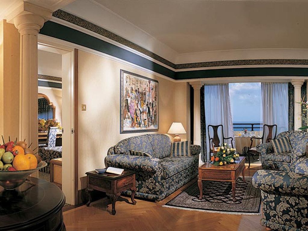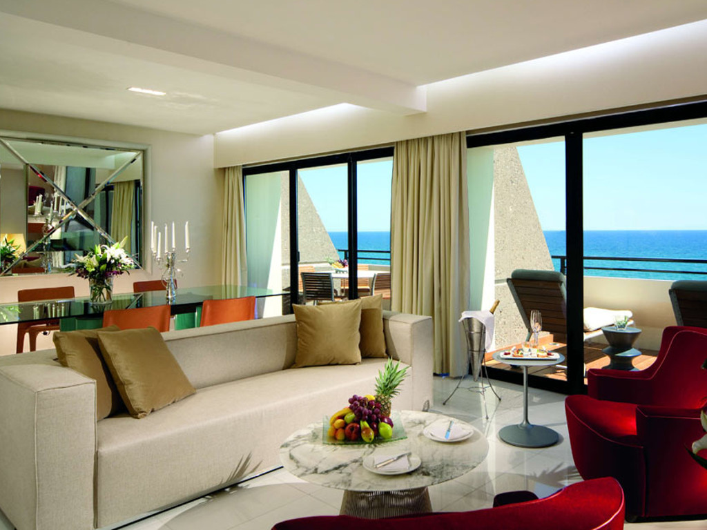 Amathunta Suite: 50 кв.м., мебель известной итальянской фабрики Cassina и белые мраморные полы, отдельная спальня с балконом, отдельная гостиная с балконом, вид на море, расположены на 3-ем и 5-ом этажах, максимум в номере 2 взрослых, можно сделать смежным с номером категории superior sea view.
